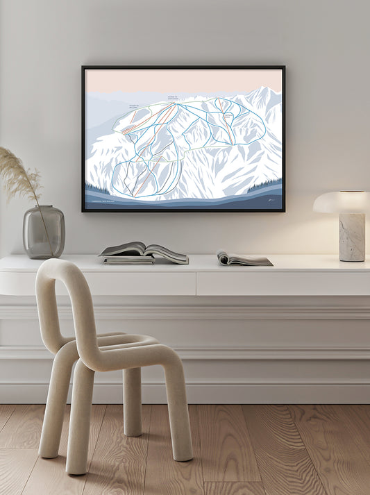 CORONET PEAK Ski Resort Trail Map. Queenstown, New Zealand Modern Art Print