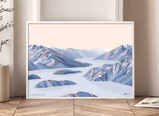 Aoraki Mt Cook New Zealand Art Print. Modern Mountain Artwork