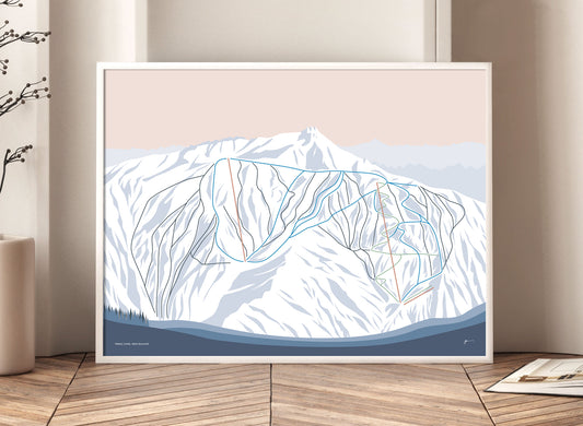 TREBLE CONE, Wanaka, New Zealand Modern Mountain Trail Map Wall Art Print