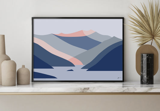Lake Hawea, Corner Peak, New Zealand Modern Abstract Mountain Art Print