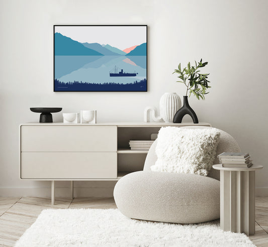 Queenstown Mountains, Lake Wakatipu, Walter Peak. New Zealand. Modern Landscape Travel Art Print