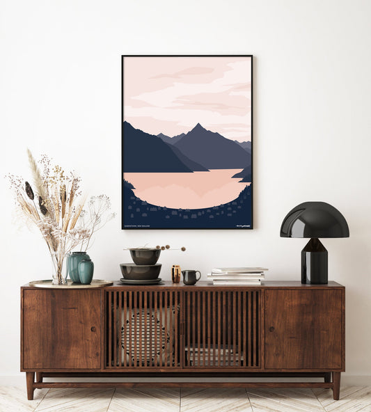 QUEENSTOWN HILL VIEW, New Zealand Contemporary Lake and Mountain Art Print