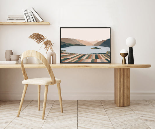 Rippon Vineyard, Lake Wanaka, New Zealand. Contemporary Mountain Landscape Art Print