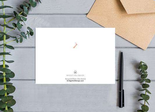 Select from my range of modern New Zealand greeting cards. The cards are available as a single card, pack of 6 or pack of 12. You can also make up a set of 10, 15 or 20 of the cards of your choice for a discount price. If you would like to send a card as a gift with a message then you can add a message at check out and have it sent directly to the recipient.
