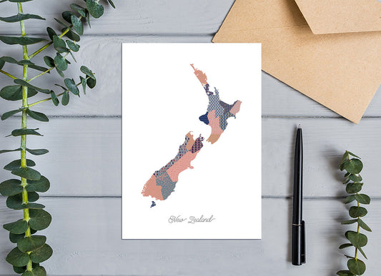 Map of New Zealand, Contemporary Designer Greeting Card