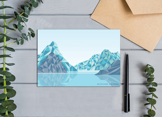 Milford Sound, Mitre Peak, New Zealand Geometric Design Greeting Card