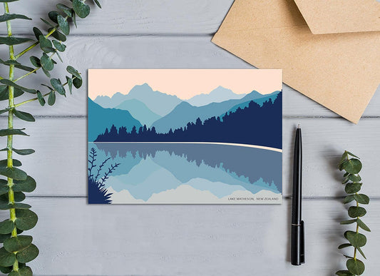 Lake Matheson, Aoraki Mt Cook Reflection, West Coast New Zealand. Modern Greeting Card