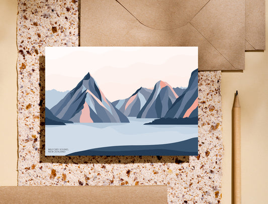 Milford Sound Mountains, New Zealand. Modern Mitre Peak Greeting Card