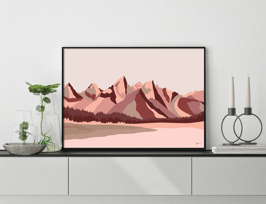 Pink Grand Teton Art Print, Grand Teton National Park, Jackson Hole, Wyoming Modern Mountain Wall Art