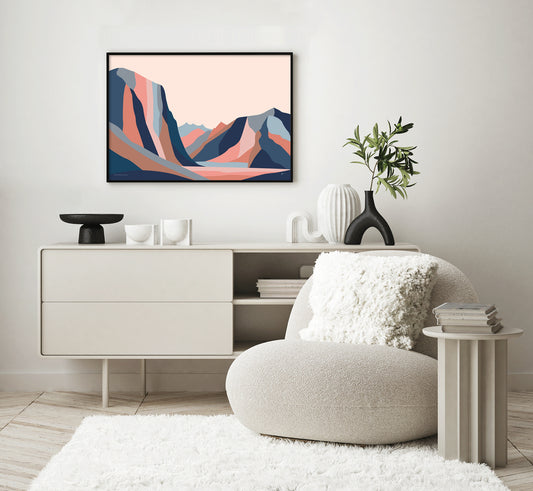 Modern USA and Canada art prints. This mountain art collection celebrates beautiful and memorable places in Bridget's unique and contemporary style. They make the perfect gift for anyone who loves the mountains or a memento of cherished memories. High quality and affordable framed, unframed or canvas prints with free worldwide shipping.
