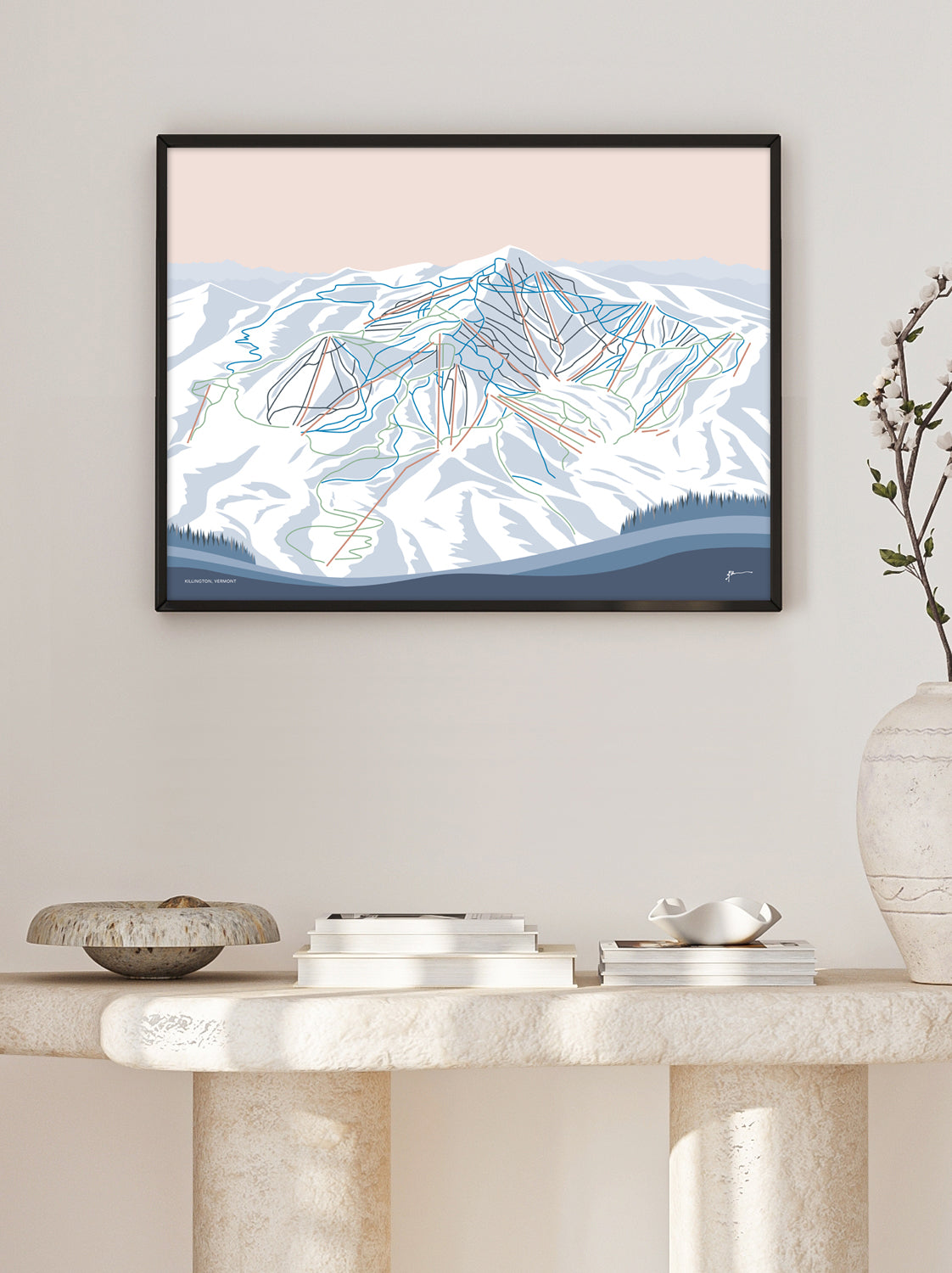 KILLINGTON, VERMONT Modern Mountain Trail Map Wall Art Print