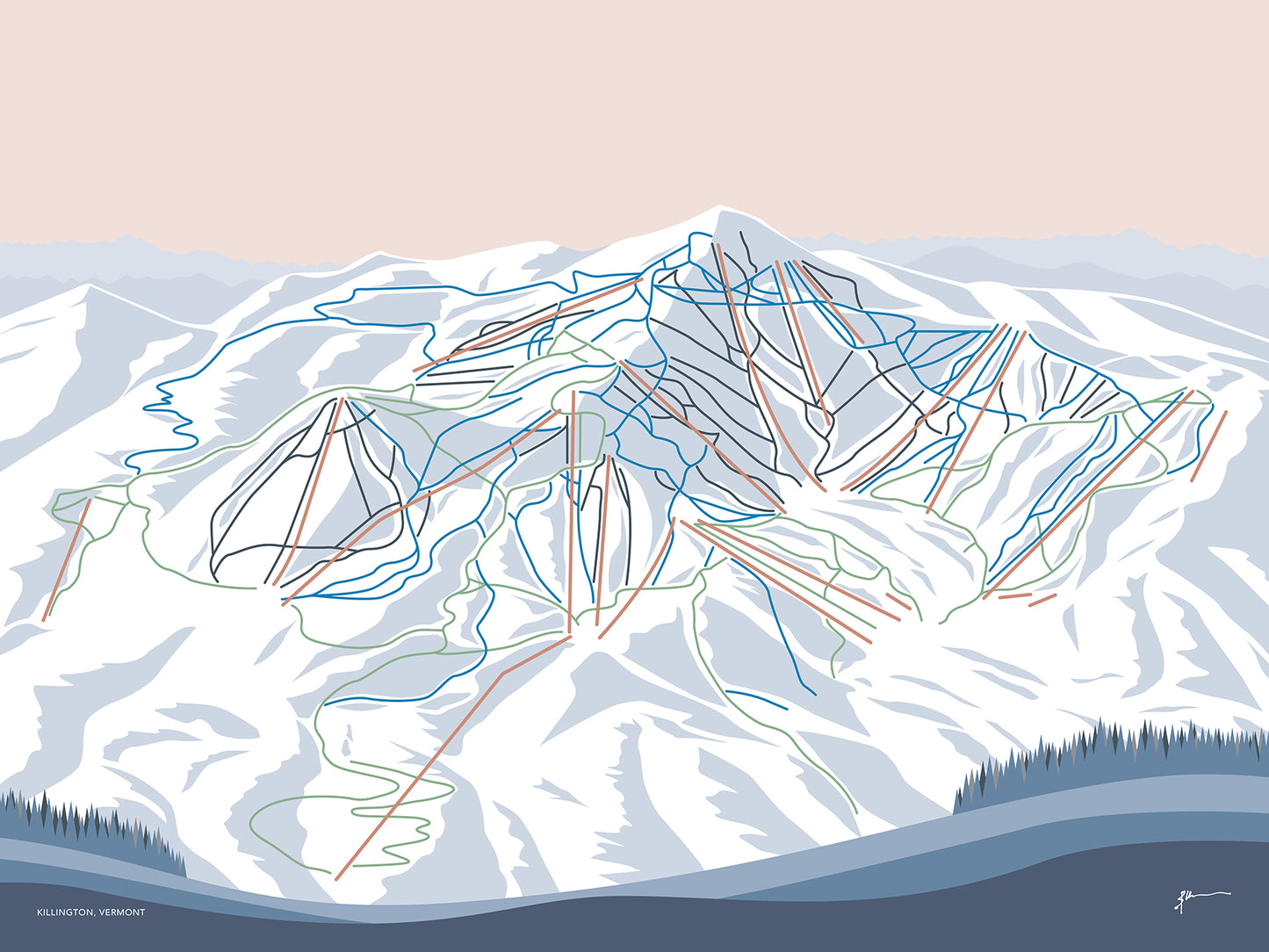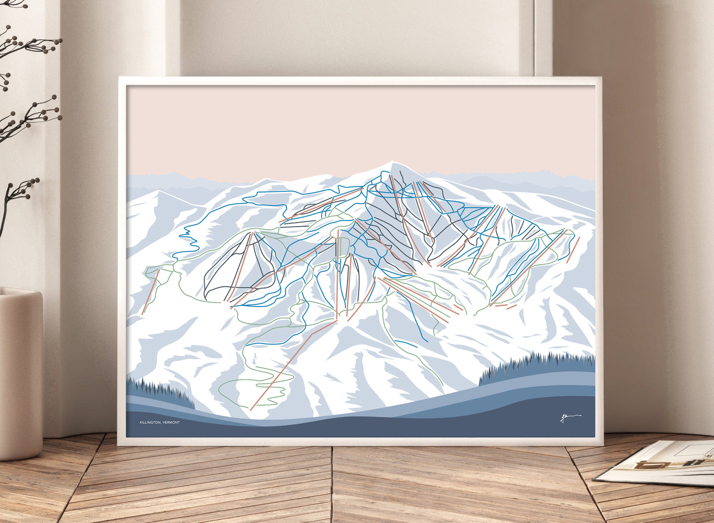 This art print is a modern depiction of the ski trails of Killington and would make the perfect gift for anyone who loves this great mountain. I hope you enjoy this Killington trail map print!