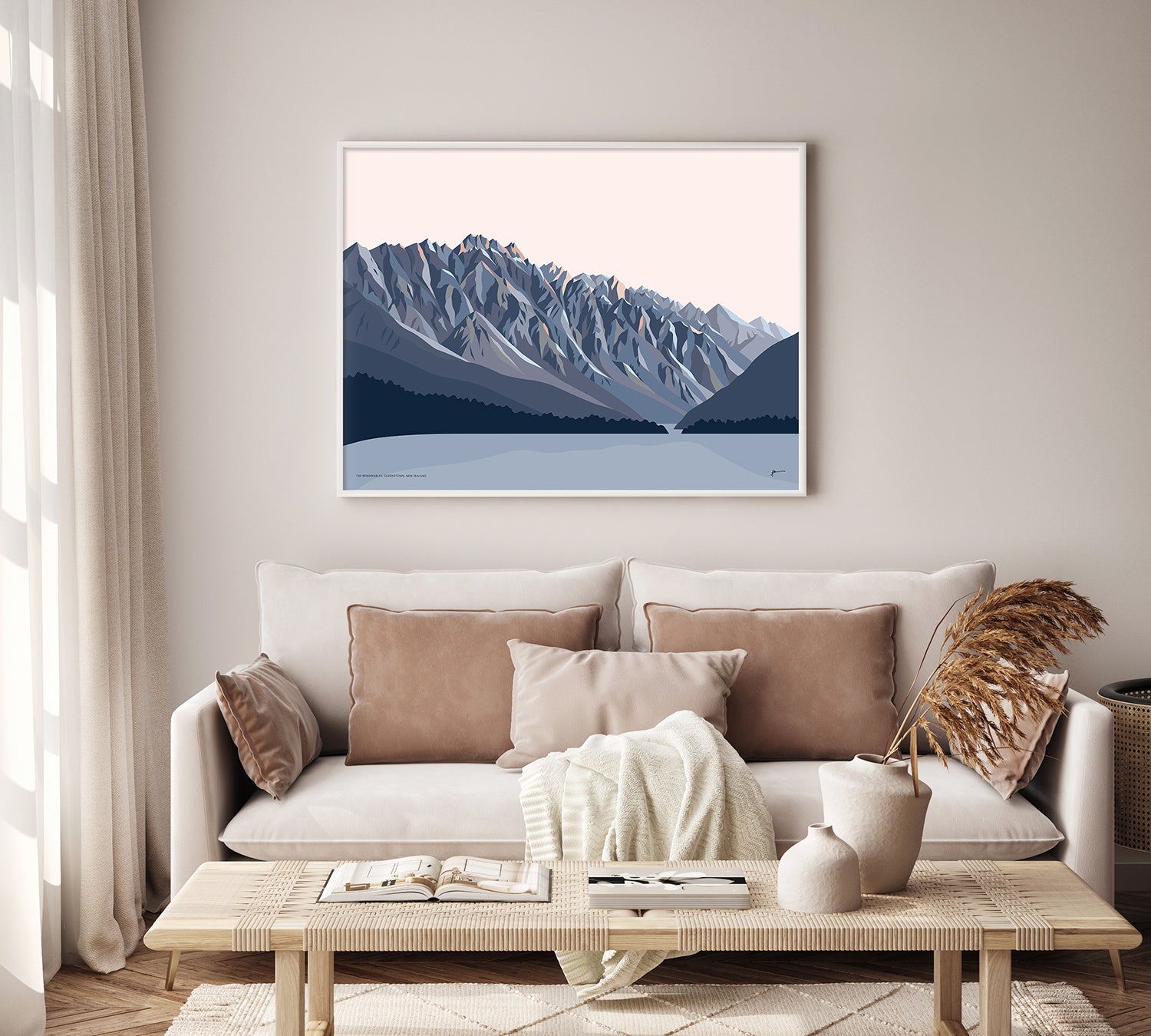 The Remarkables Mountain Range in Queenstown, New Zealand is a truly memorable view and a great place for skiing, climbing and hiking. This art print is a modern depiction of these beautiful mountains at twilight and makes the perfect memento of treasured memories or a perfect gift for loved ones who have a connection to this very special place.